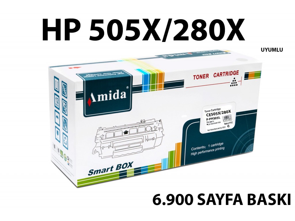 AMİDA İTHAL MUADİL TONER (P-PH505L) HP CE505X - CE 505X - CE505 - CE505 - CE 505 - 505X - 505 - 05X - 05 - P2050 - P 2050 - 2050 - P2055D - P 2055D - P 2055 D - 2055D - 2055 - P2055DN - P 2055 DN - P 2055DN - P2055 DN - 2055DN - HP CF280X - CF280 - CF 280X - 280 - 280X - PRO400 - PRO 400 - M401D - M401 - M401A - M401DN - M401DW - 401A - 401DN - 401DW - M425DW - M425DN - M401 - M425 - CANON CRG719 - CRG719H - MF5940 - 5940 - CRG 719H - 719H - LBP252 - LBP252DW - LBP 252DW - 252DW - MF419X - MF 419X - MF419 - MF416DW - MF416 - MF 416DW - 416DW - LBP6300 - LBP 6300 - LBP6650 - LBP 6650 - LBP6670 - LBP 6670 - MF5840 - MF 5840 - MF5880 - MF 5880 - MF5980 - MF 5980 - MF6180 - MF 6180 - MF6140 - MF 6140 - 719H - CRG 719 6300 - 6650 - 6670 - 5840 - 5880 - 5980 MODEL YAZICILAR İLE UYUMLU 6.900 SAYFA BASKI KAPASİTELİ SİYAH TONER
