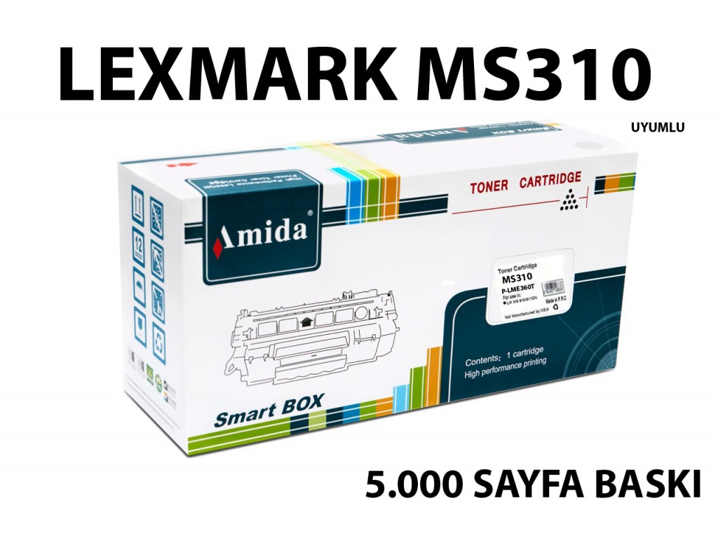 AMİDA İTHAL MUADİL TONER (P-LM MS310LT) LEXMARK MS310 - MS 310 - MS310D - MS 310D - MS310DN - MS 310DN - MS312 - MS312DN - MS410 - MS 410 - MS410D - MS 410D - MS410DN - MS 410DN - MS415 - MS 415 - MS415DN - MS 415DN - MS510 - MS 510 - MS510DN - MS 510DN - MS610 - MS 610 - MS610DN - MS610DE 50F5H00 - 505H - 50F5000 - 505 - MODEL YAZICILAR İLE UYUMLU 5.000 SAYFA BASKI KAPASİTELİ SİYAH TONER