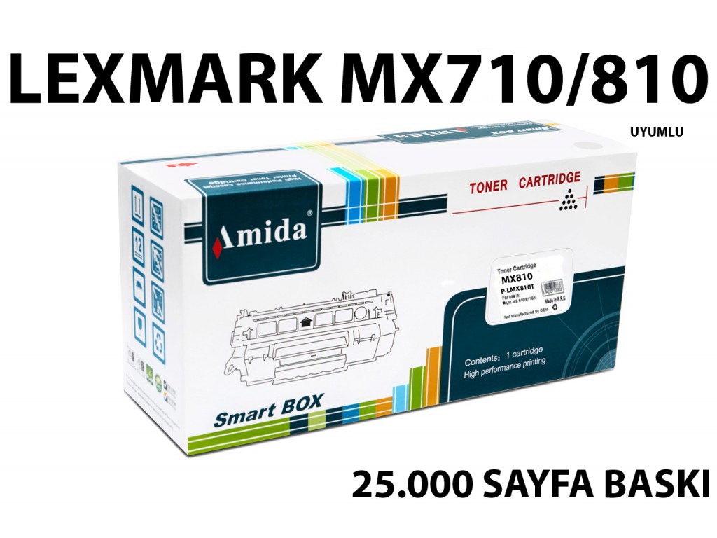AMİDA İTHAL MUADİL TONER (P-LM MX810LT) LEXMARK MX710 - MX 710 - MX710DE - MX710DHE - MX711 - MX 711 - MX711DE - MX711DHE - MX810 - MX 810 - MX810DFE - MX810DPE - MX810DME - MX810DXFE - MX810DXPE - MX810DXME - MX811 - MX 811 - MX811DXME - MX811DXPE - MX811DXFE - MX811DME - MX811DPE - MX811DFE - MX812 - MX 812 - MX812DXME - MX812DME - MX812DXPE - MX812DXFE - MX812DPE - MX812DFE - 710 - 711 - 810 - 811 - 812 - 62D5000 - 62D5H00 - 625 - 625H - MODEL YAZICILAR İLE UYUMLU 25.000 SAYFA BASKI KAPASİTELİ SİYAH TONER